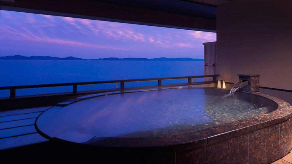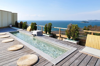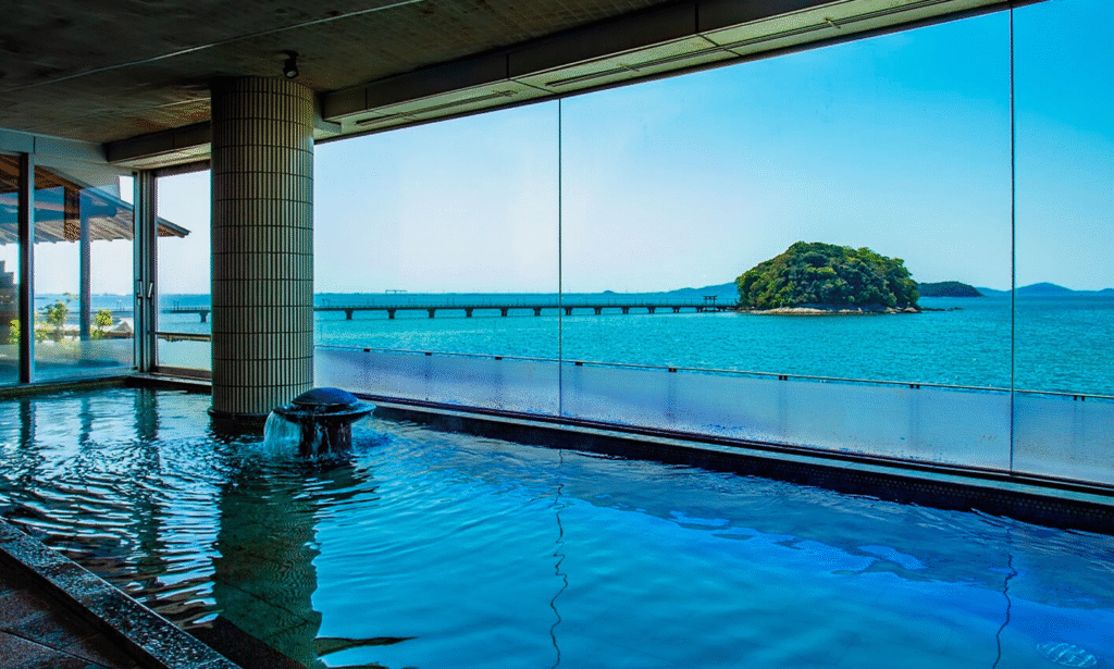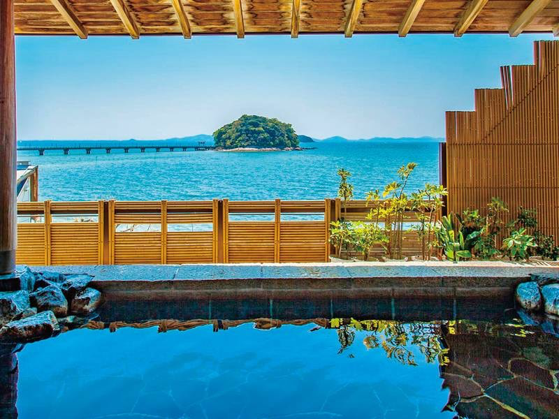 竹島が一望でき、海も綺麗ですね。自然に癒やされます。竹島水族館のすぐ横のホテルですので、アクセスもよいです。